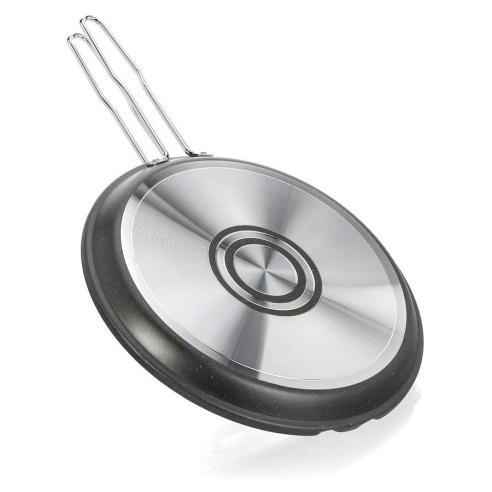 Rivestimento Petravera Plus rinforzato con particelle di pietra, corpo in alluminio e vernice antigraffio. Le due padelle, unite dallo speciale incastro, permettono di girare la frittata con la massima sicurezza e praticità. Le due parti possono essere utilizzate separatamente, come due padelle. Più sano perché privo di PFOA e Nikel